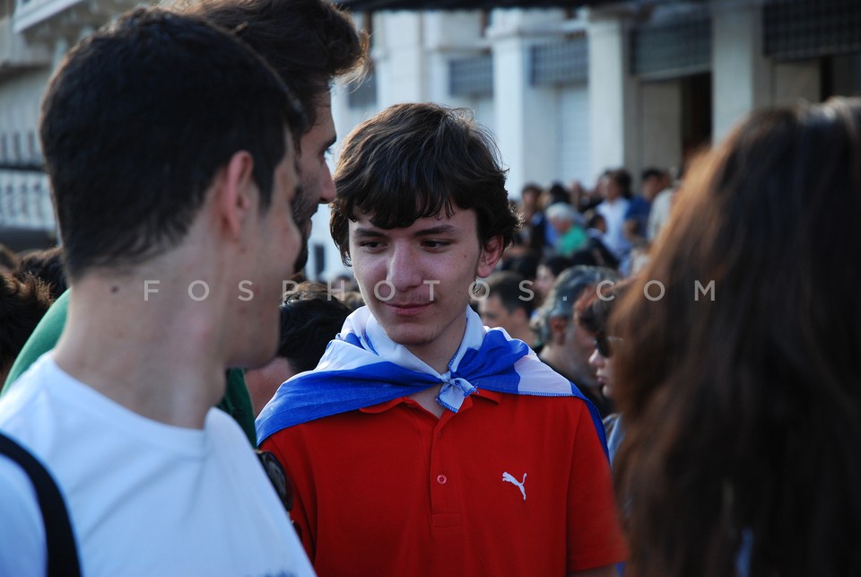 Teenage protester with the greek flag on…