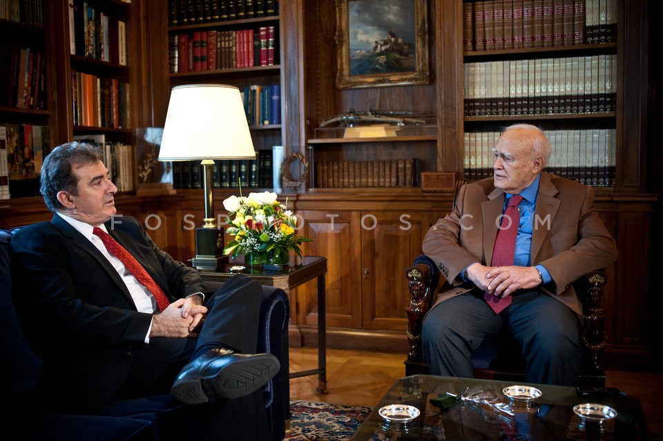 Greek President Karolos Papoulias receiv…