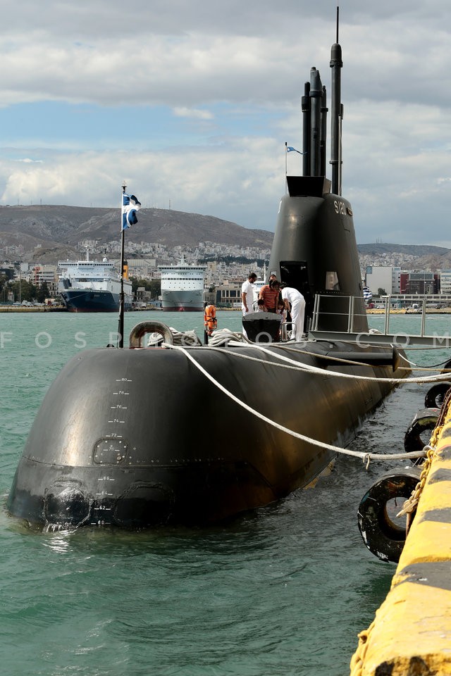 The submarine Papanikolis docked at Pira…