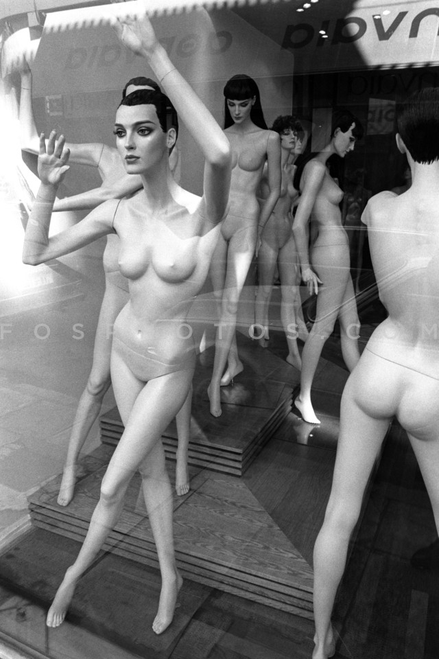 Naked mannequins on the window of a stor…