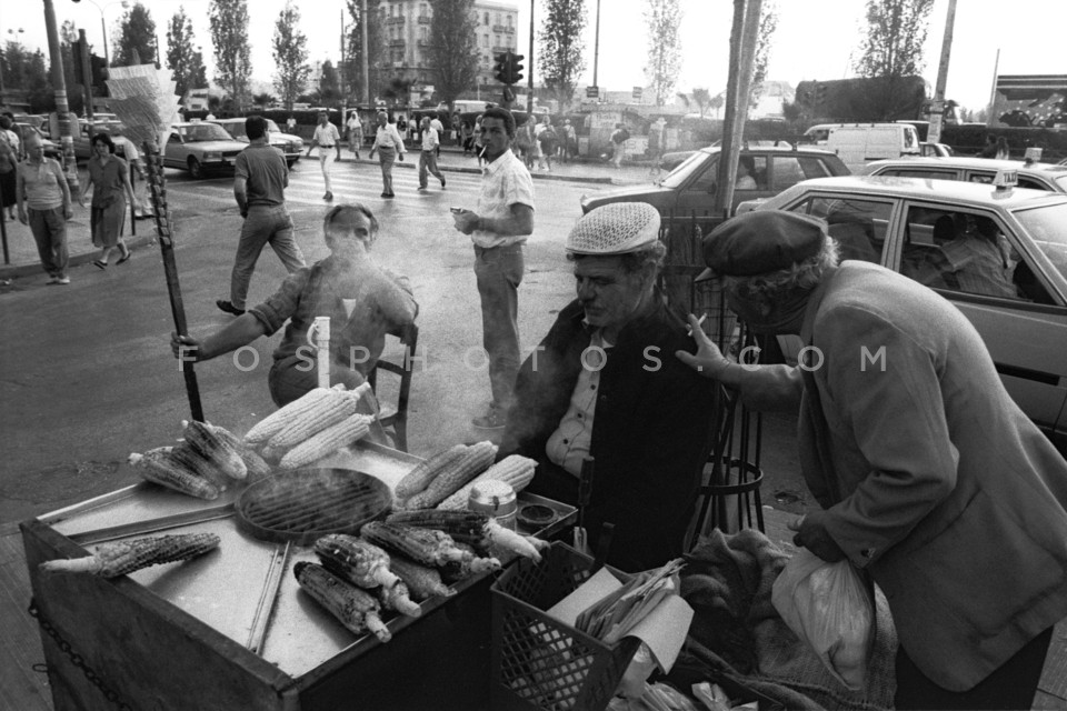 Man selling grilled corn in Athens, Sept…