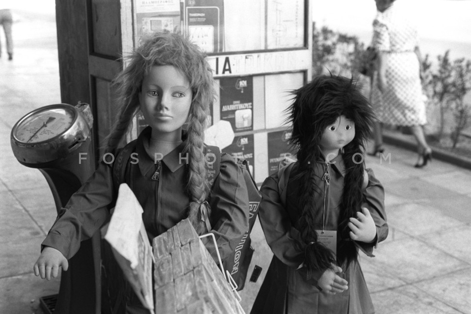 Dolls outside a shop in Athens, September 1990