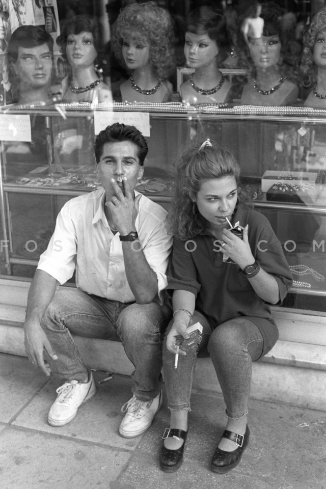 Couple smoking, Athens, September 1990