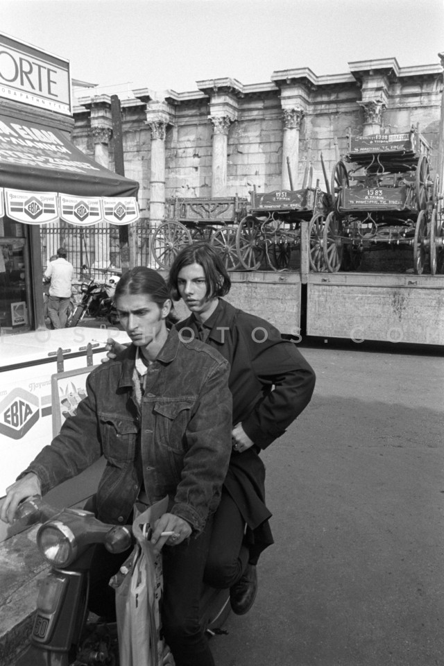 Couple on motorcycle in Monastiraki, Ath…