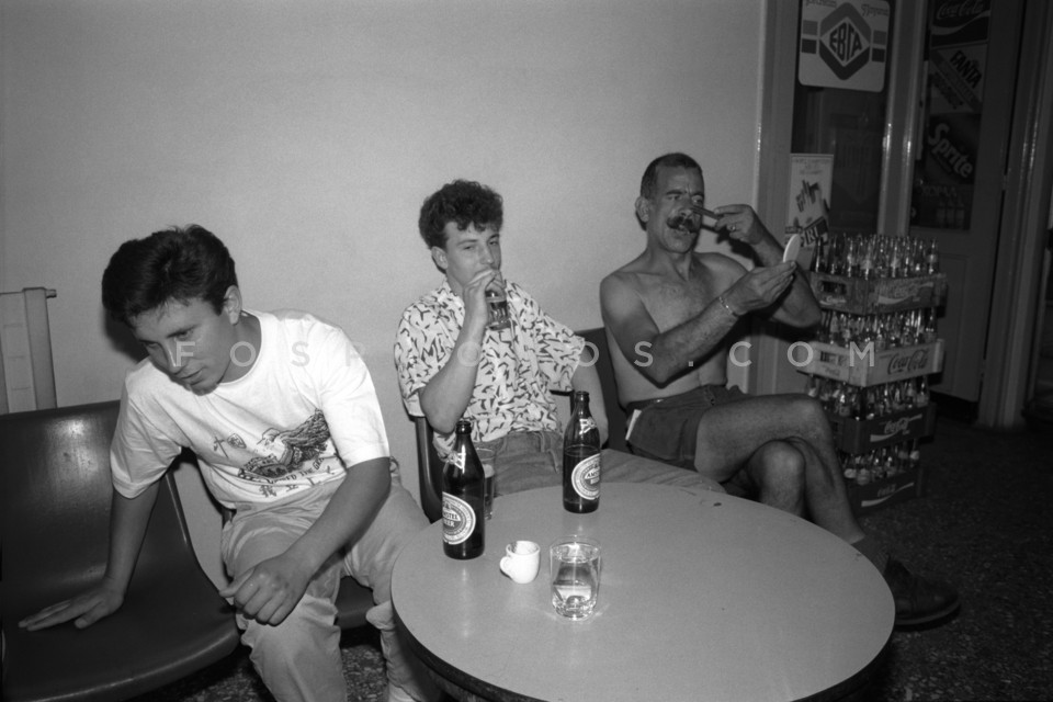 Stratos at a cafe in Peiraeus, April 1990