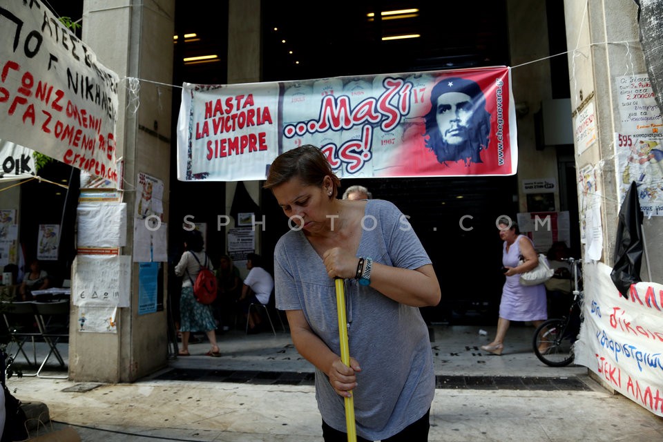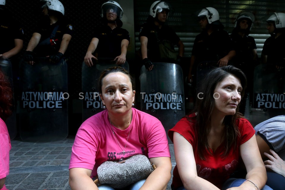 Cleaners of Finance Ministry protesting …