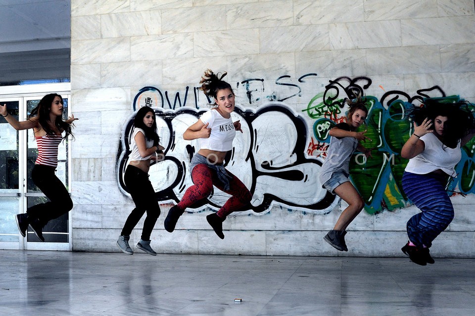 Dancers and skaters in Athens, July 2014