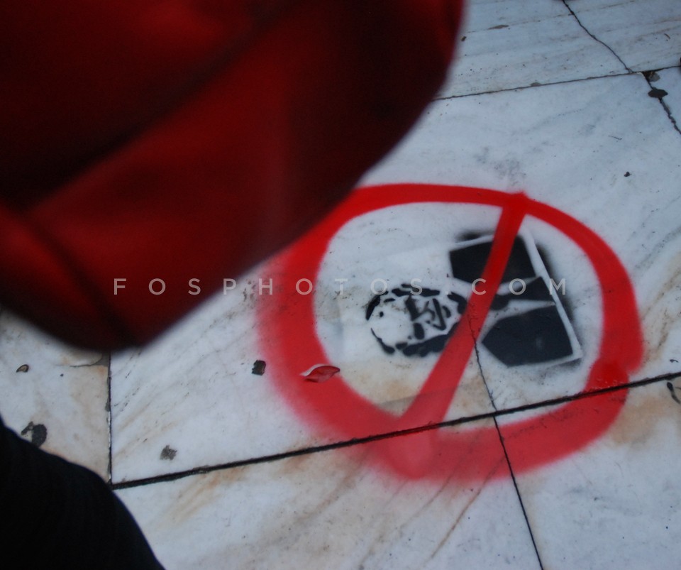 Satyrical stencil depicting George Papan…