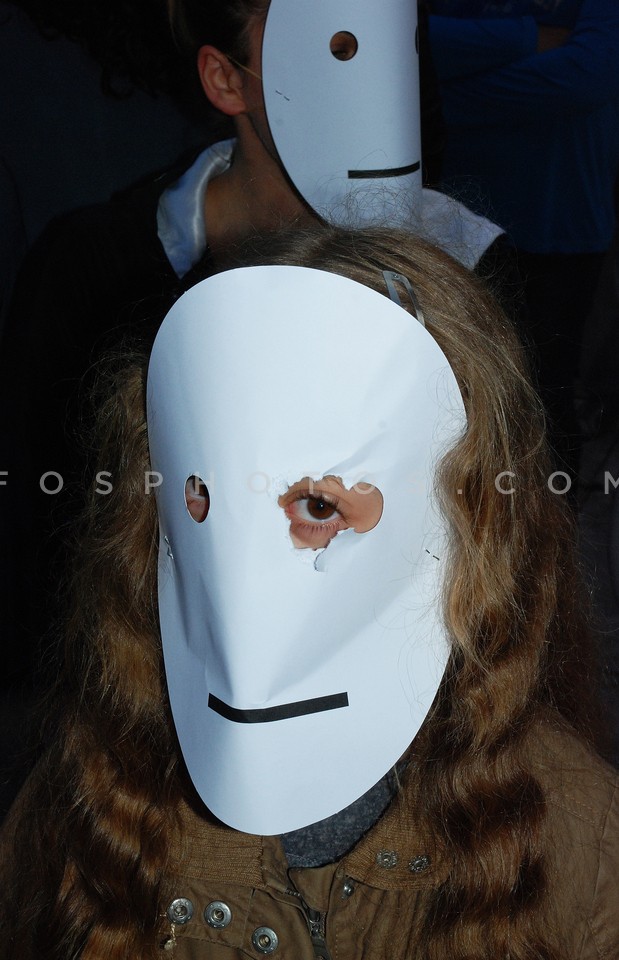 Girl demonstrating wearing mask on her f…
