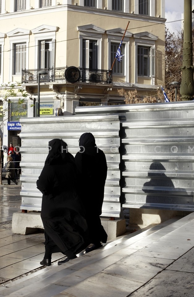 Nuns leaving the Athens Cathedral after …