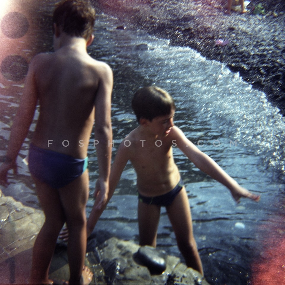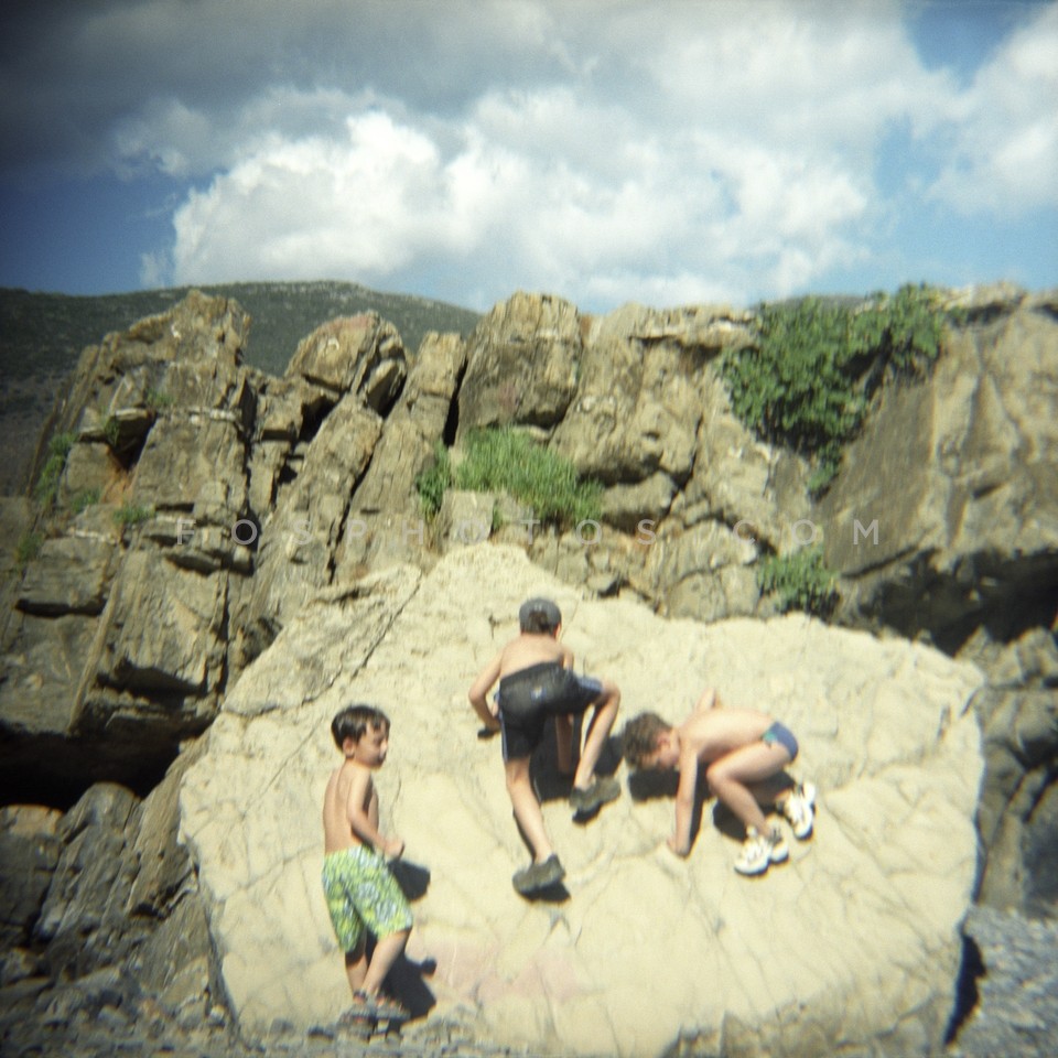 Children playing on a rock in Kotronas b…