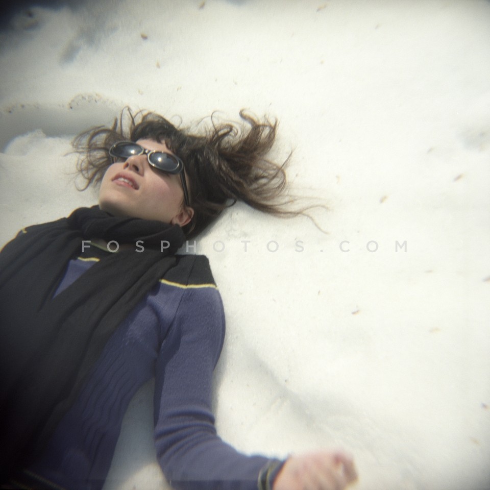 Girl laying in the snow, Trikala Corinth…