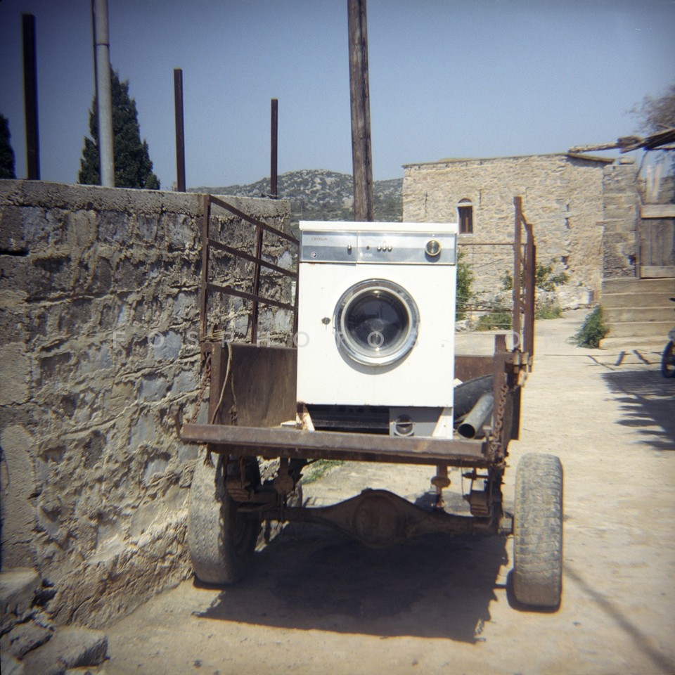 Washing machine loaded on old tricycle, …