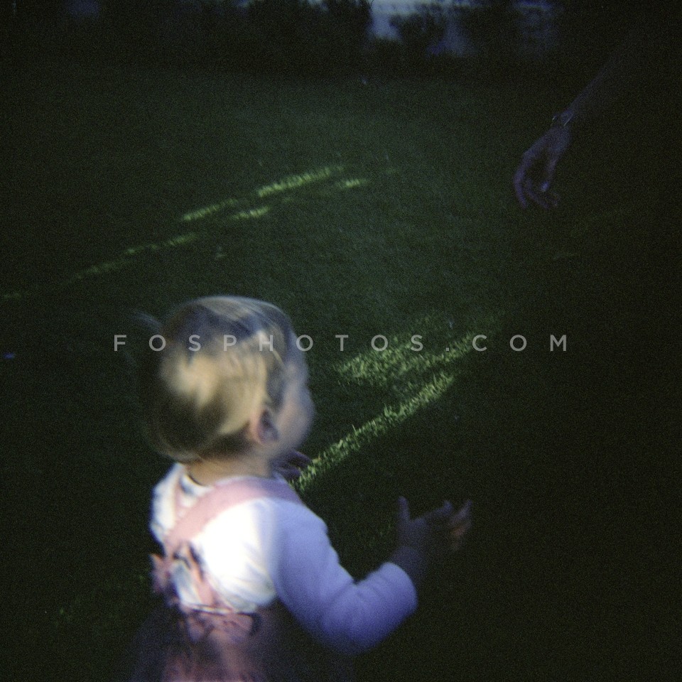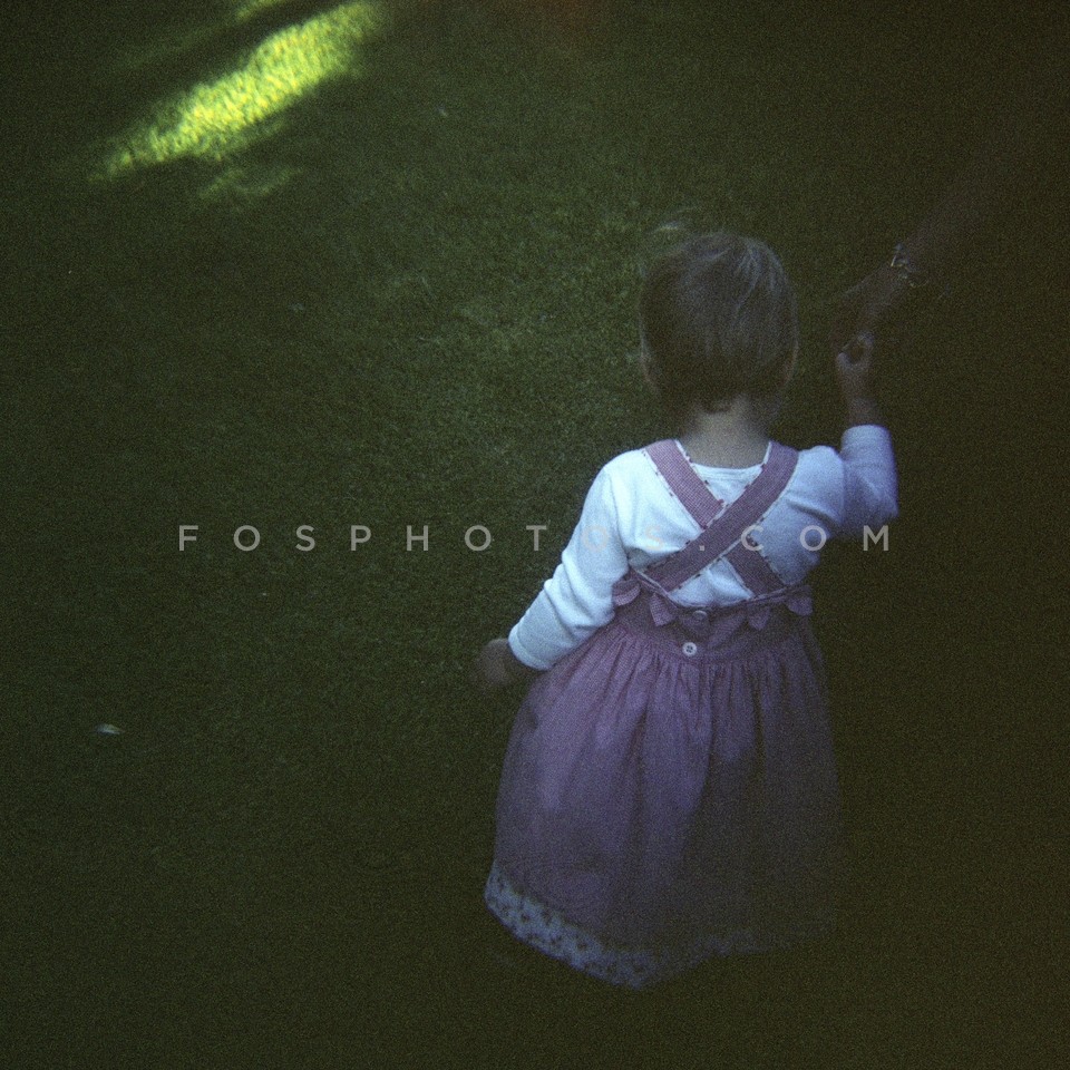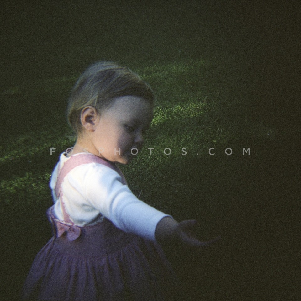 Baby girl in grassy garden