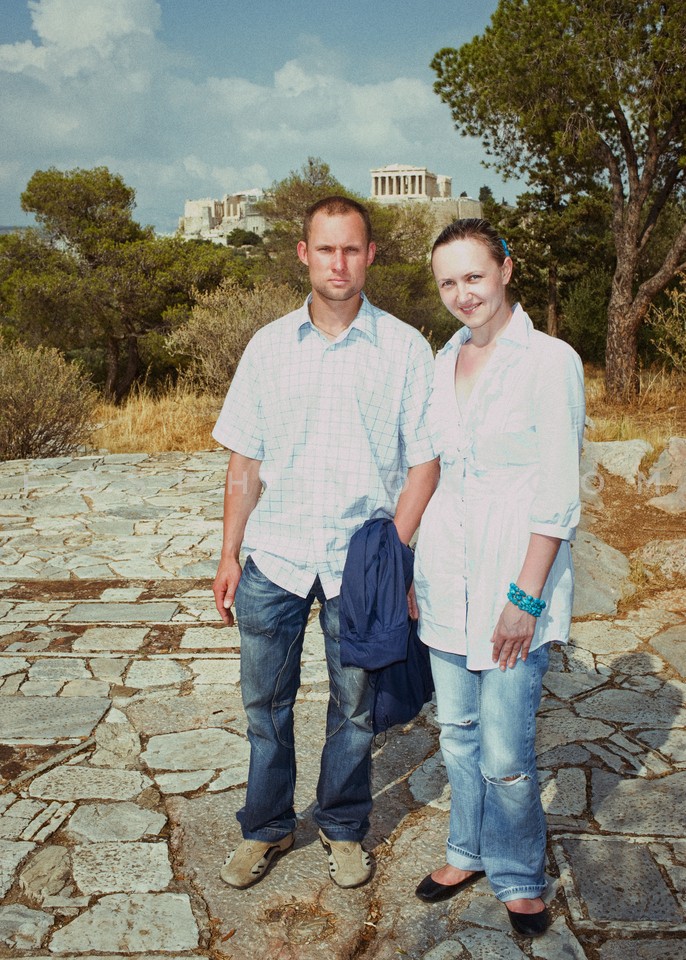 Couple of tourists to Filopappou hill op…