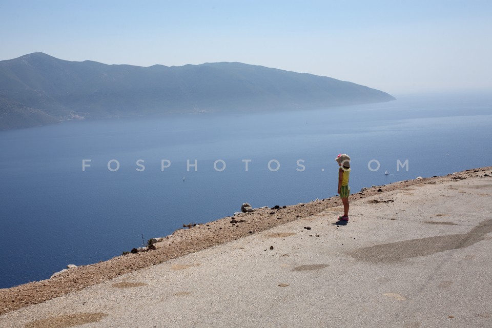 Girl on empty road with a view to Ithaca…