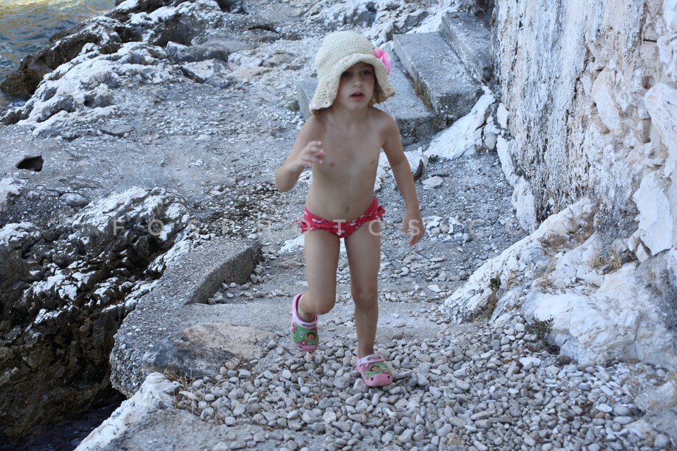 Little girl in Agia Sofia bay in Erissos…