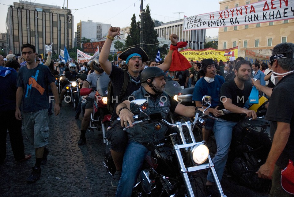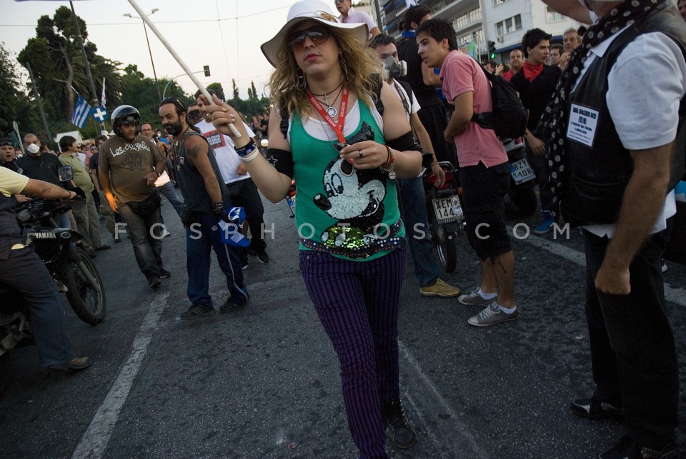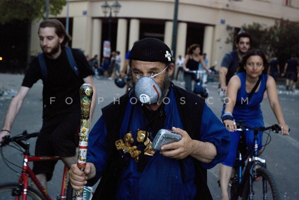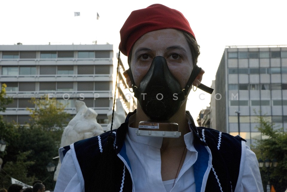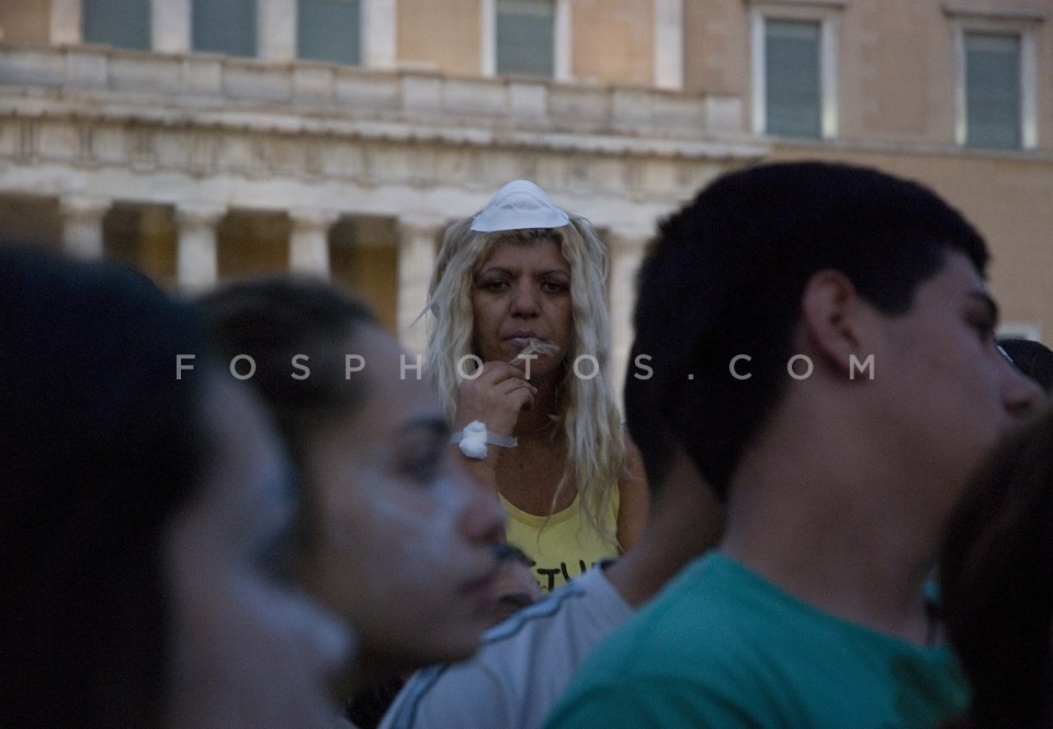 Topless protestor eating souvlaki during…