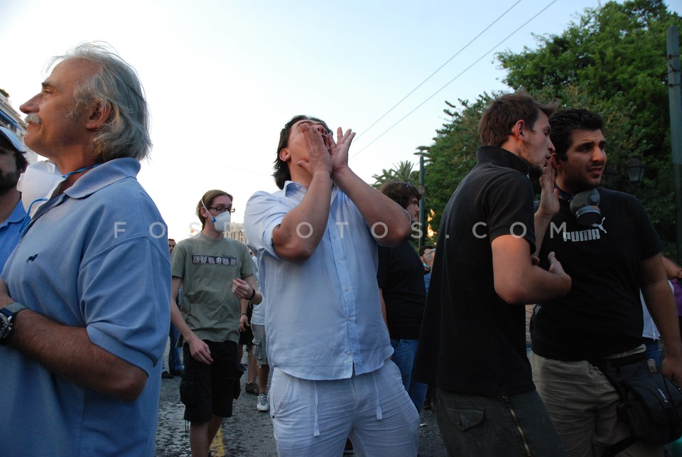 Protestor shouting during the Indignados…
