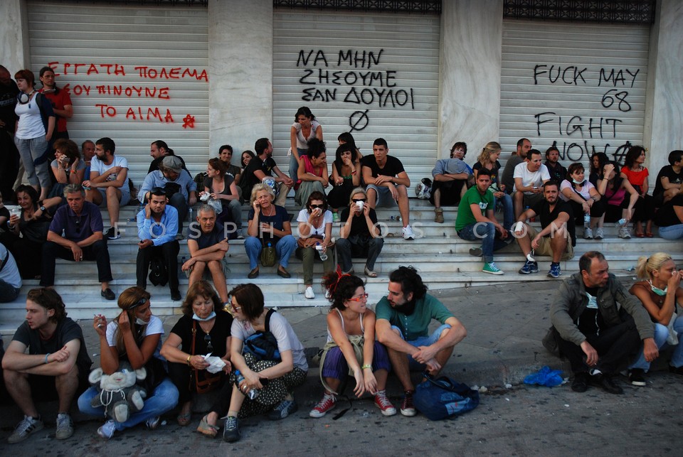 Protestors sitting on the steps of the e…