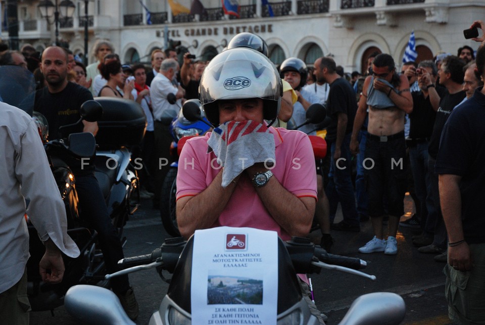 Motorcyclist covering his face with piec…