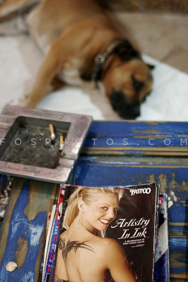 Old magazines and an ashtray on the tabl…
