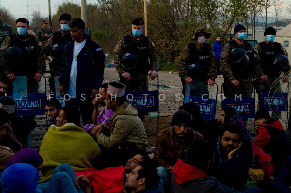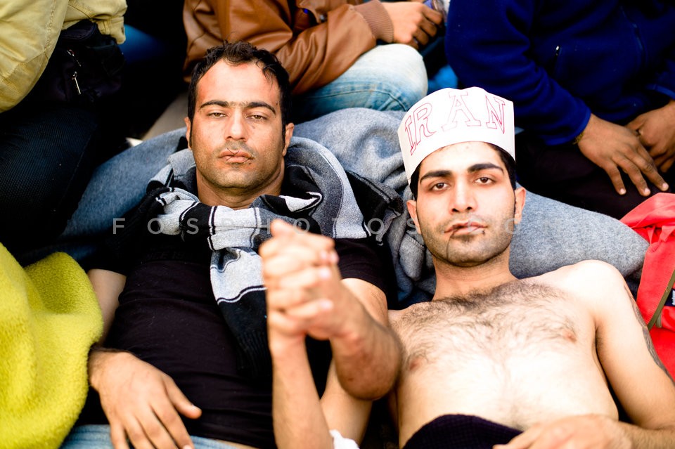 Moroccans migrants with mats. Idomeni re…