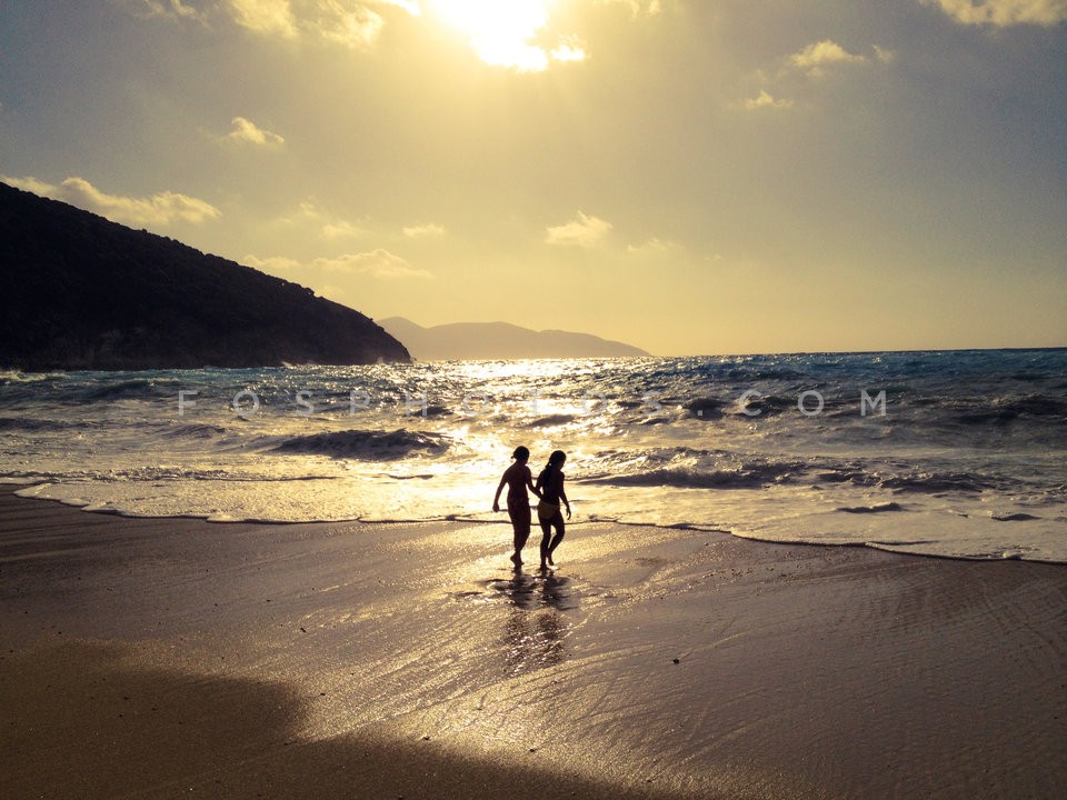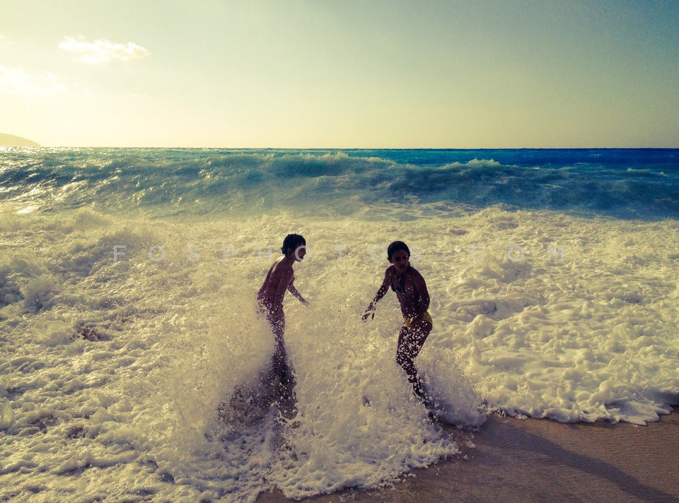 Playing with waves in Myrtos beach, Ceph…