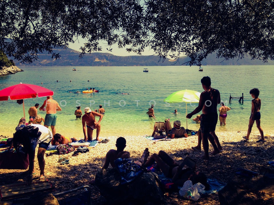 Bathers on the beach, Cephalonia, Ionian…