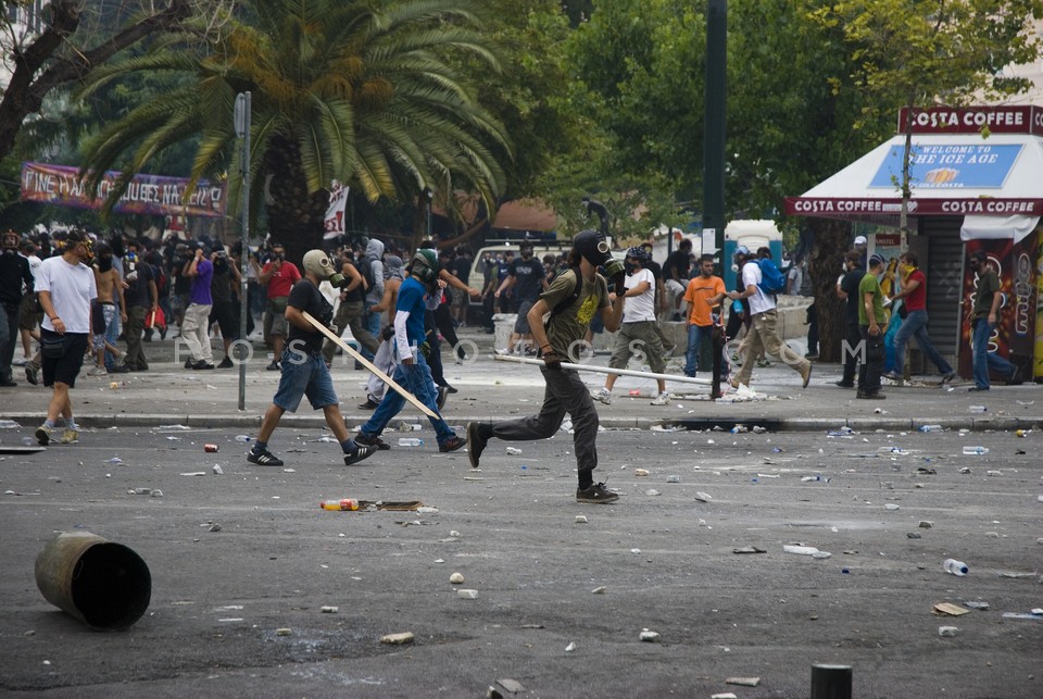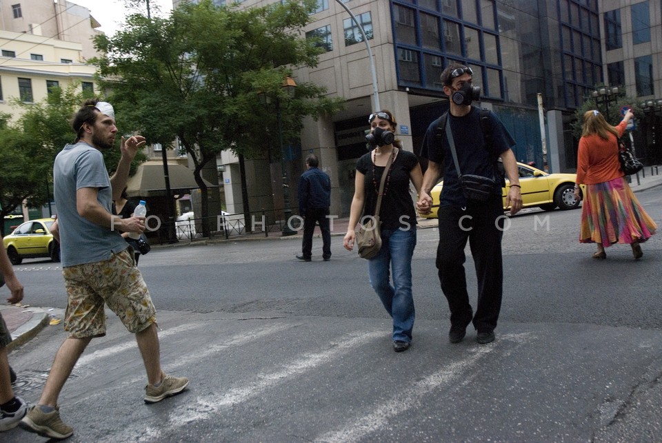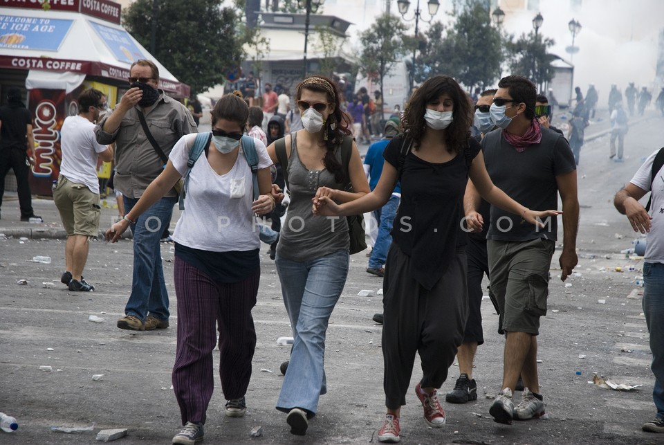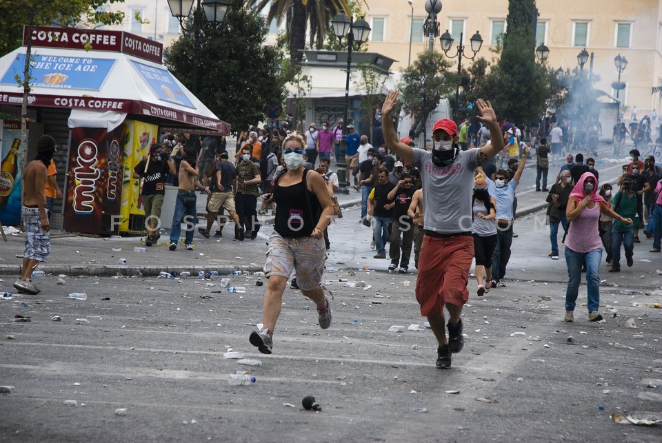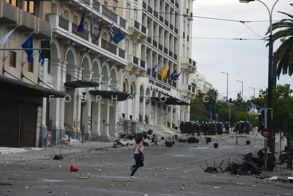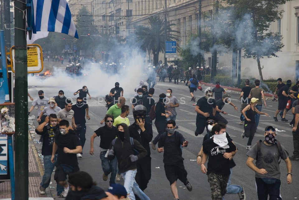 Demonstrators running on Othonos Street …