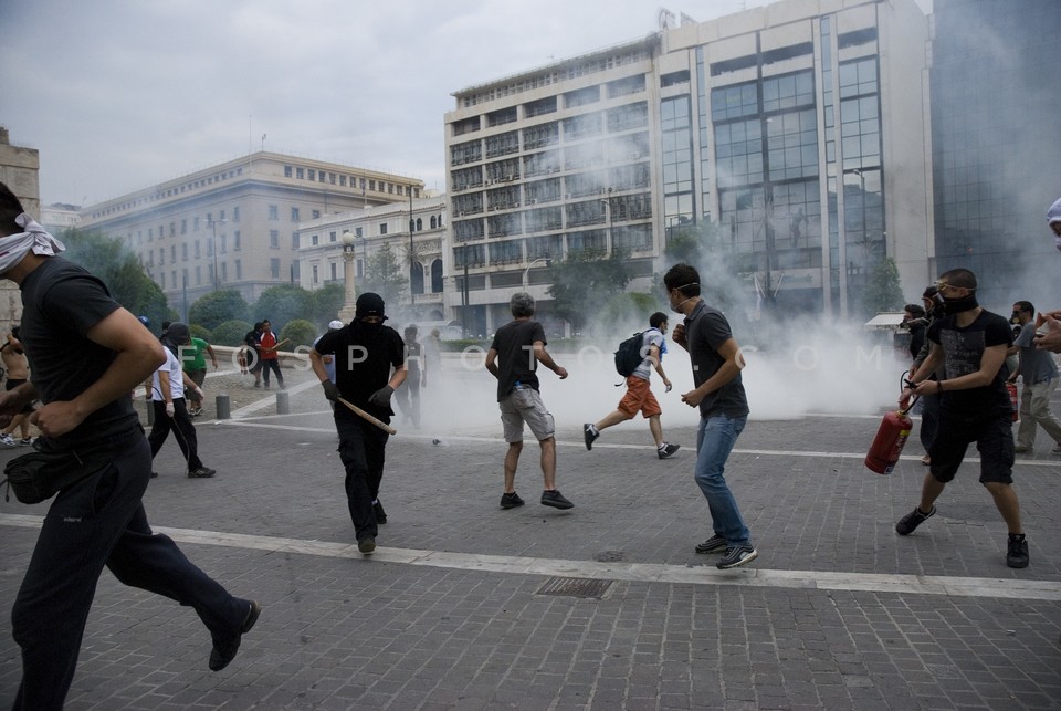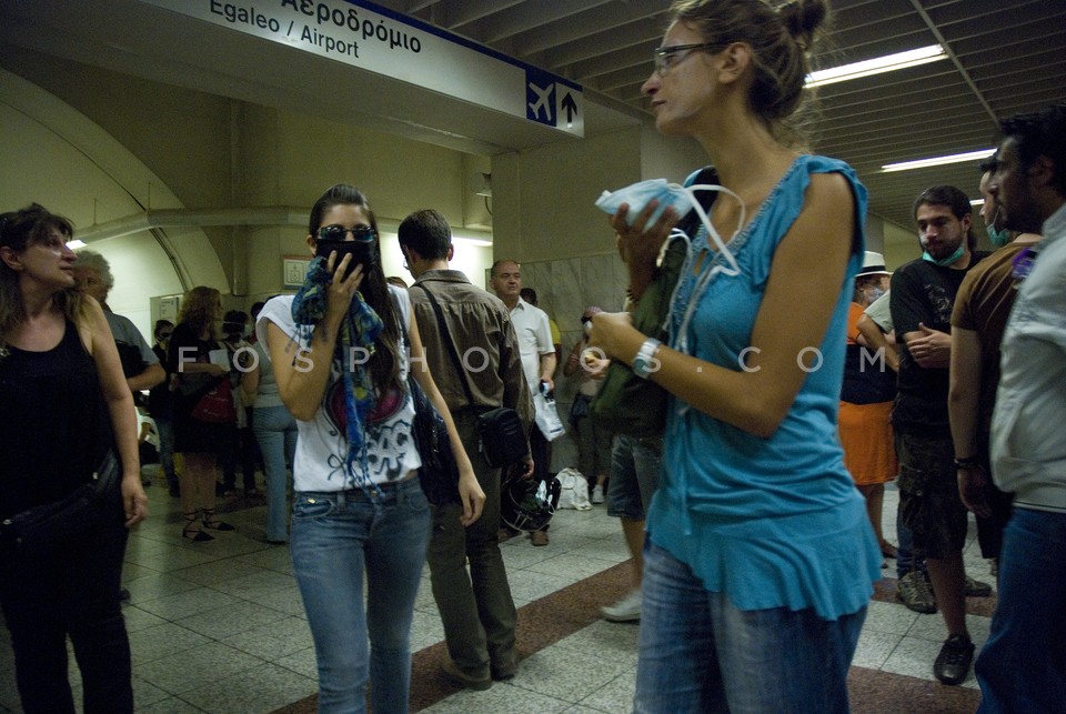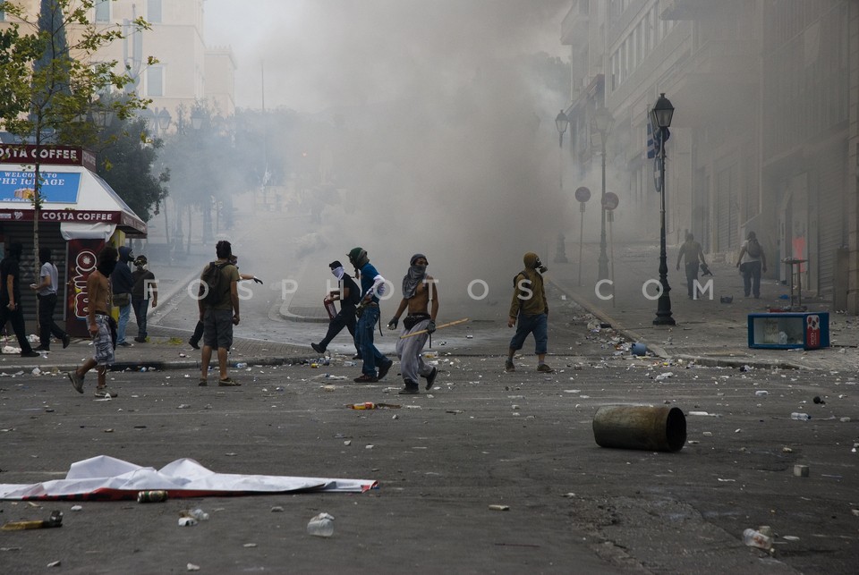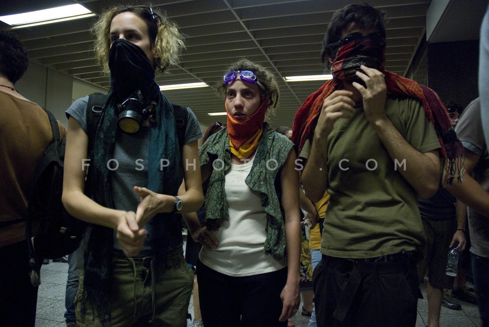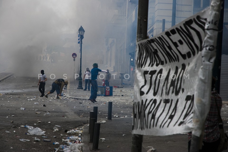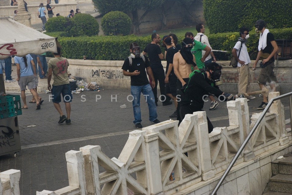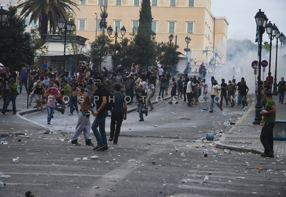 Demonstrators running on Othonos Street …