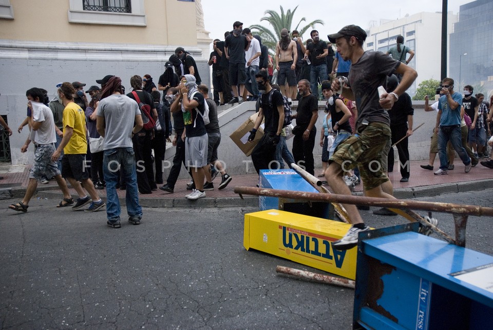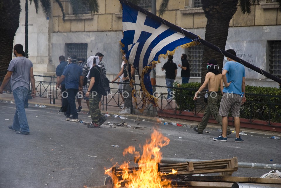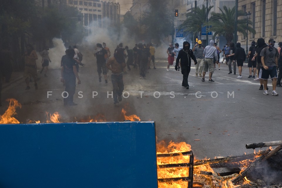Fire barricade on Panepistimiou Street d…
