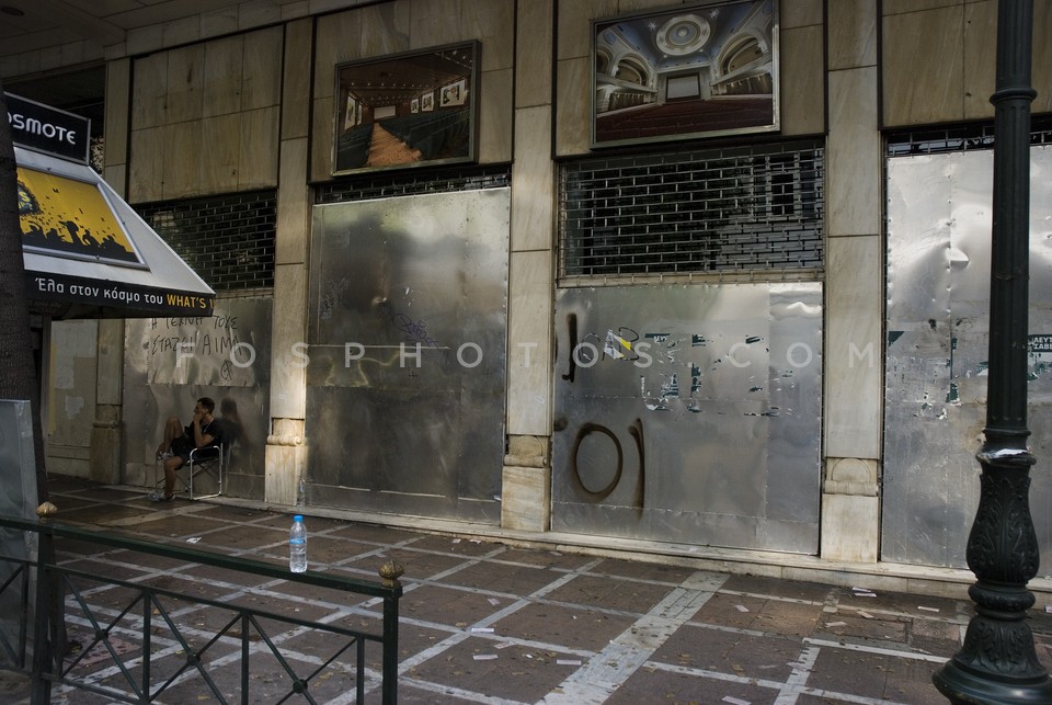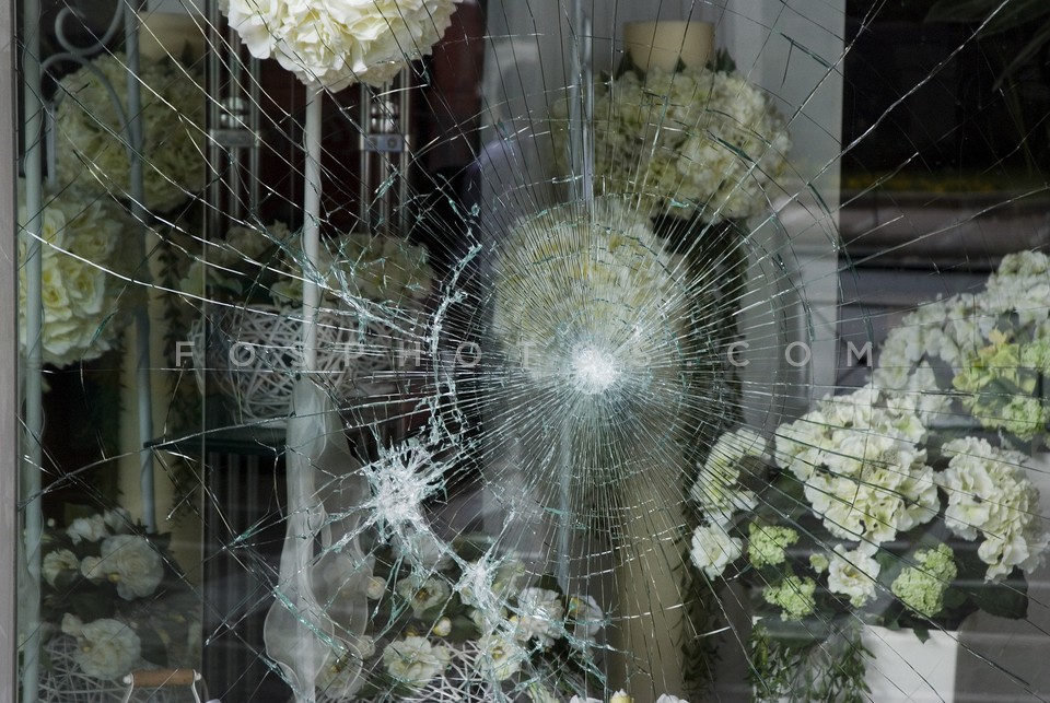 Broken window of flower shop in Syntagma…