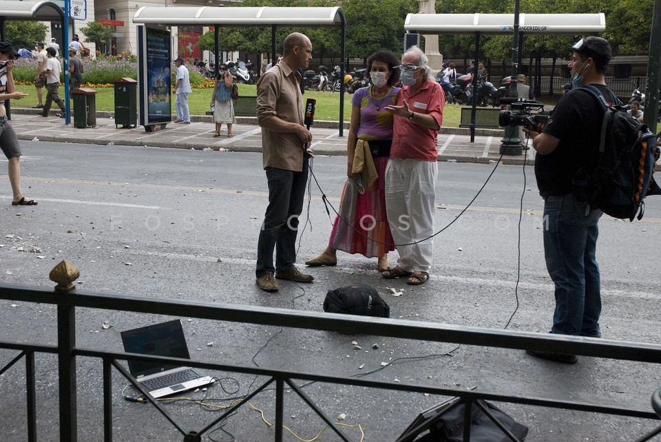 Couple of demonstrators being interviewe…