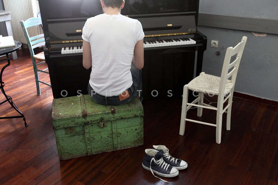 Young man playing piano, Athens, Greece,…