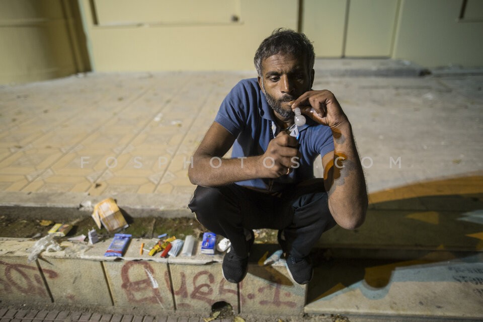 Drug addict prepares his dose on the sid…