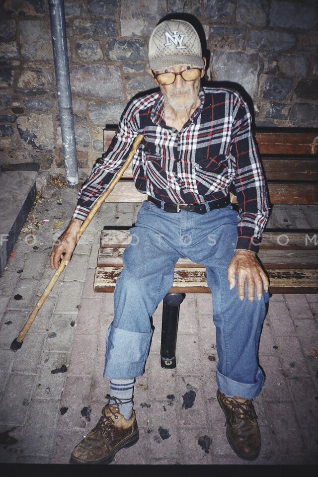 Elderly man on a bench, Athens, Greece, 2020