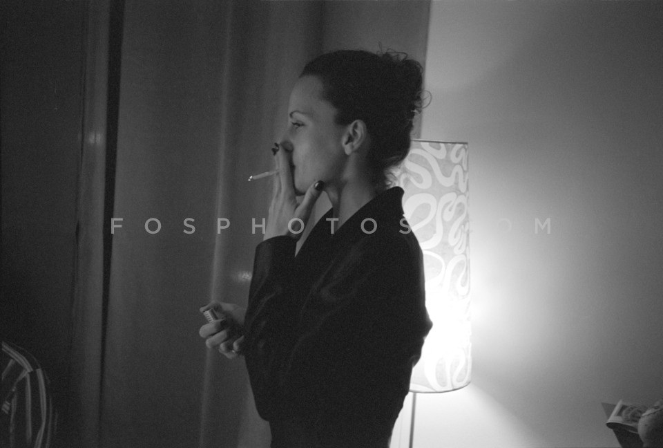 Woman lighting a cigarette, Greece, 2003