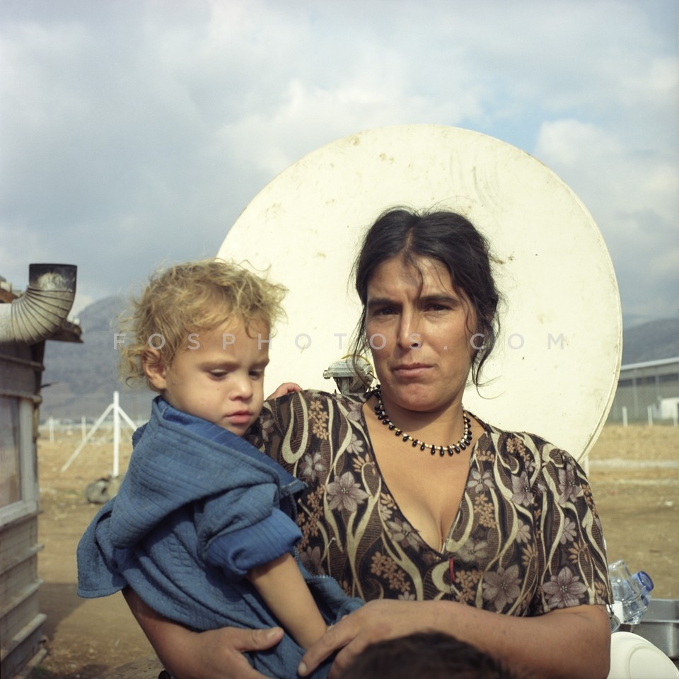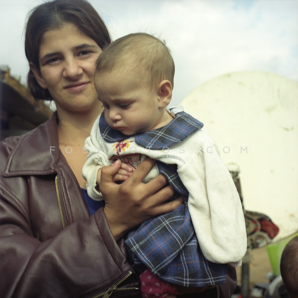 Roma mother with her baby in a Gypsy cam…