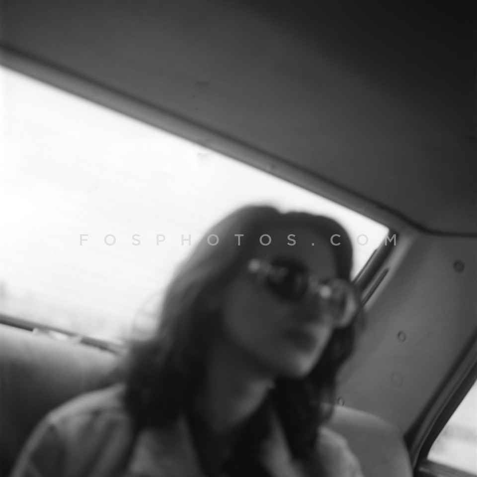 Young woman on the back seat of a car, A…