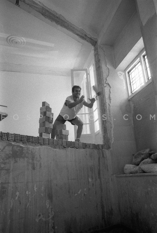 Builder on a building site, Athens, Gree…