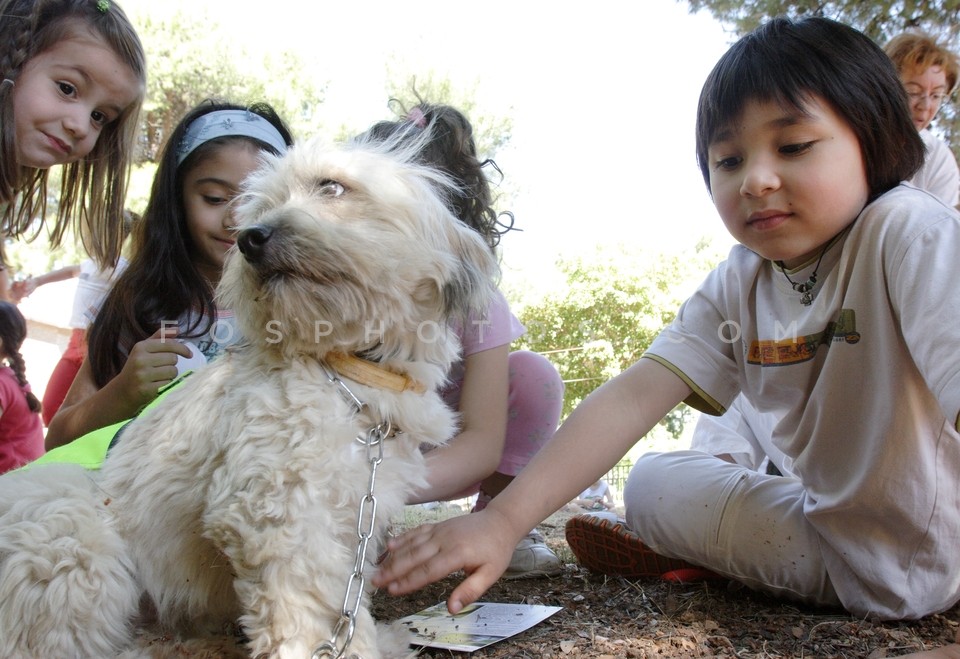 Children and dog, Athens, Greece