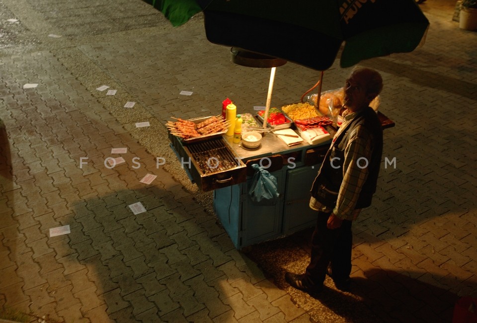 Street seller of souvlaki at a Synaspism…