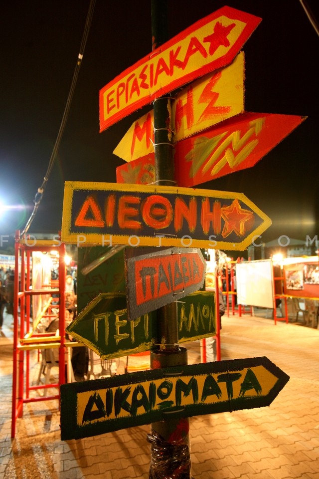 Signs at a festival of Synaspismos, Athe…