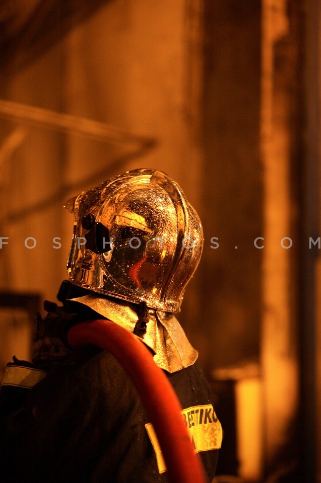 Fireman in front of broken windows, duri…