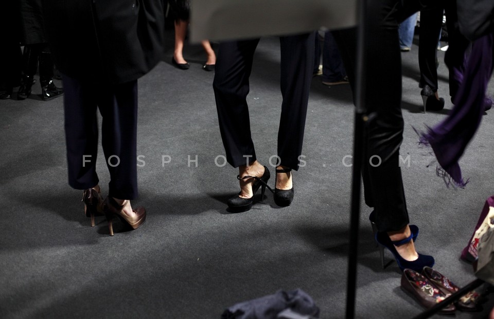 Models about to get on the catwalk at th…