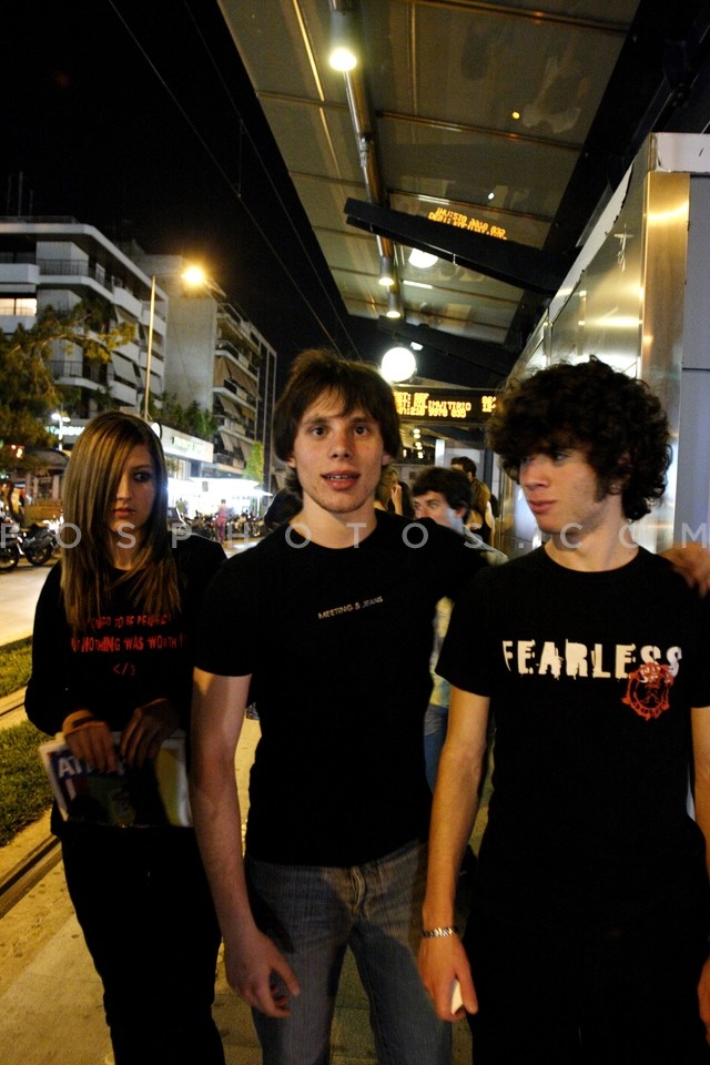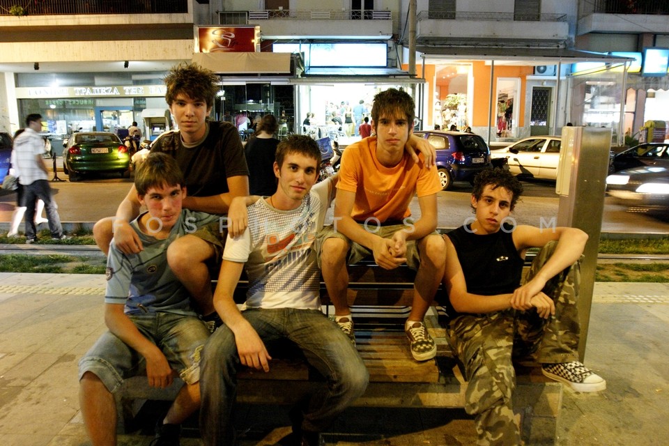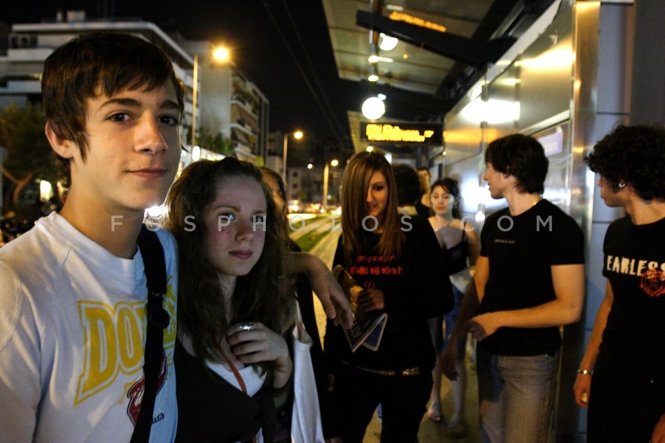 Adolescents waiting for the tram in Nea …
