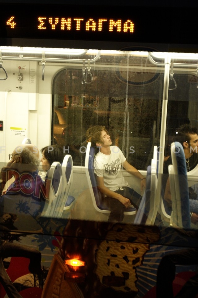 Young passenger in the tram, Athens, Greece