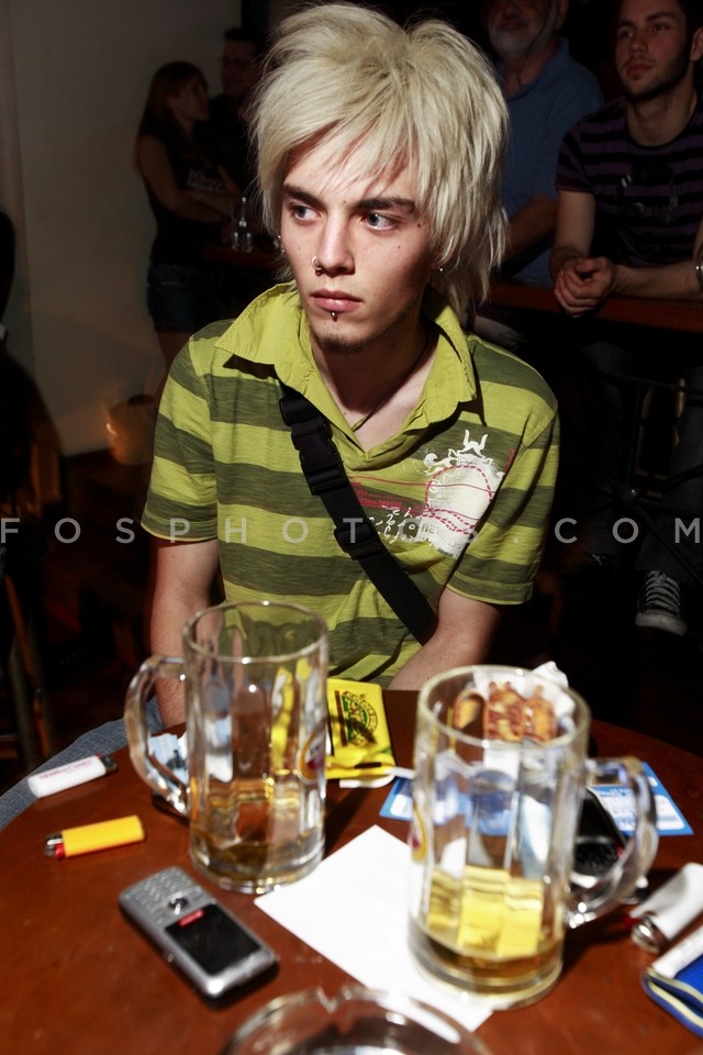 Young man with a rock look having a beer…