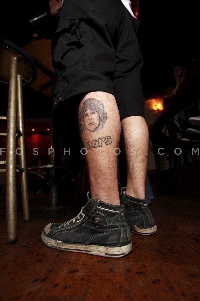 Young man's leg with tattoo of legendary…